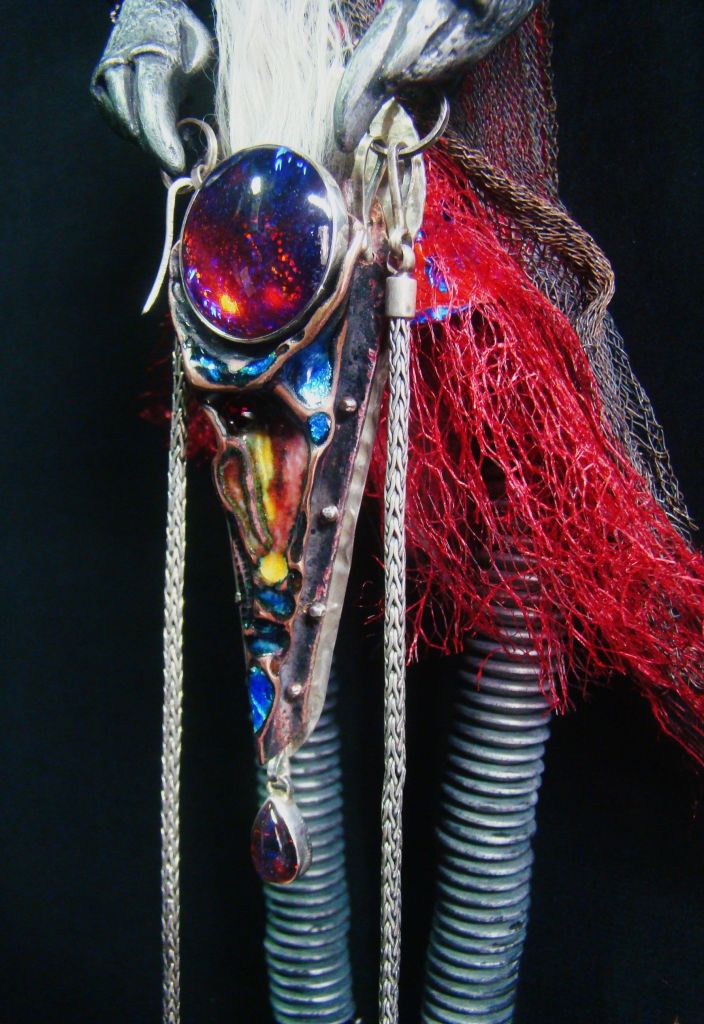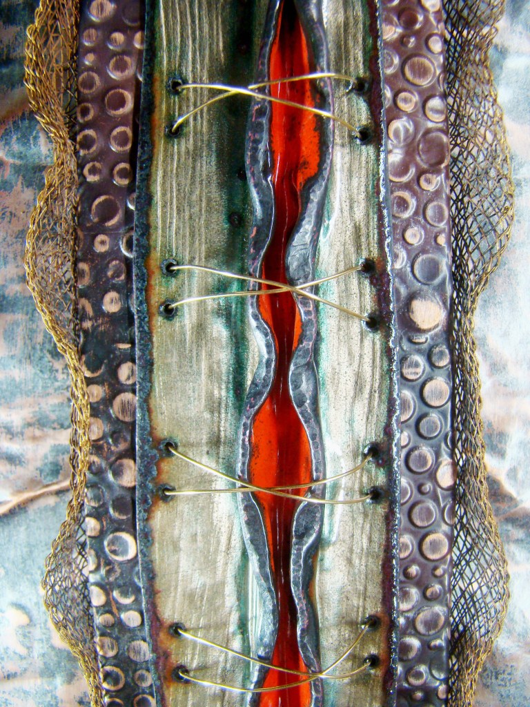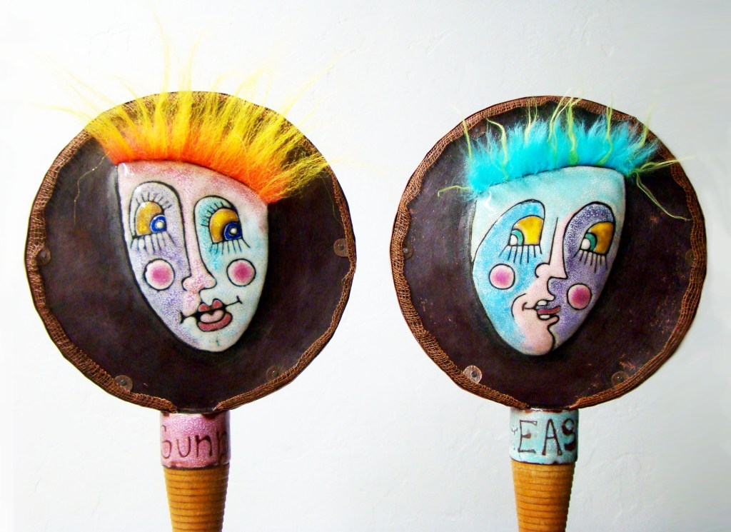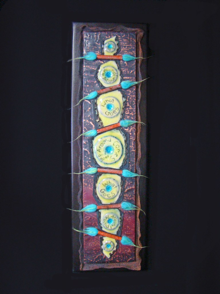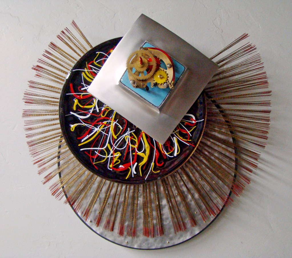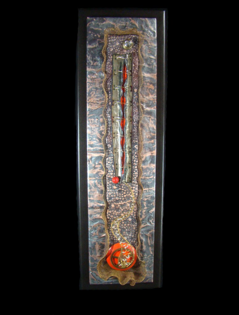A sampling of mixed media assemblages with an emphasis on metals, enamels and found/recycled objects. Typically small in size and carefully constructed, each work utilizes a juxtaposition of tactile elements and vivid colors, creating a visually multidimensional experience.