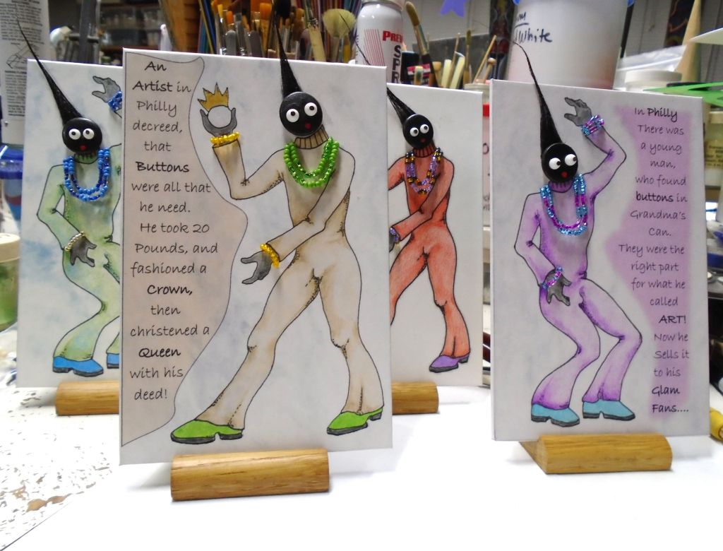 A little slide show about the making of my Big Hole Button Limerick Cards….only made 4 of them because I only had 4 buttons the right size for their heads. Available in my ETSY shop….